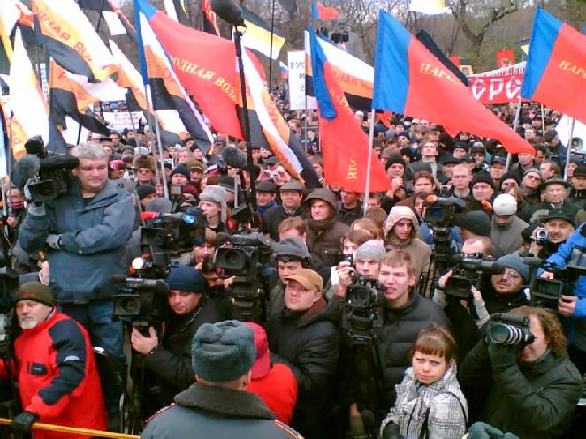 4) У Маскве ў арганізацыі й правядзеньні мітынгу, на які быў заменены “марш”, прынялі ўдзел 7 дэпутатаў дзярждумы Расеі й наступныя партыі ды грамадскія арганізацыі: партыя «Народная воля» (Бабурин), «ДПНИ» (старшыня Бялоў, сустаршыя Севасьцьянаў), «Славянский союз», «Славянский собор» (Дувалаў), «Национал-державная партия России – НДПР», «Российский общенациональный союз – РОНС», партыя «Родина», «Русский Порядок» (Уладзімір Тора [цырк! – В.Х.]), “Русское Общественное Движение» (Мілітароў), «Союза Офицеров» (С.Церахаў), «Союз русского народа», «Русский Национальный Фронт», «СКС».