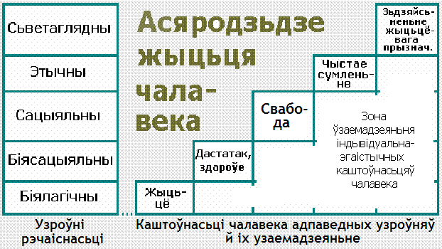 Мал. 2.19. Шкала і шматузроўневая сістэма індывідуальных каштоўнасьцей чалавека, накіраваных на яго ж самаго.