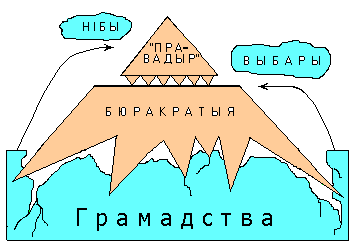 Мал. 3.2. Сітуацыя, калі бюракратыя апанавала грамаства і паразітуе на ім. «Выбары» выкарыстоўваюцца толькі для «адвода вачэй».