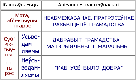 Паспрабуем, хаця б сьхематычна, адказаць на дадзенае пытаньне. Пачнем з каштоўнасьцяў грамадства.