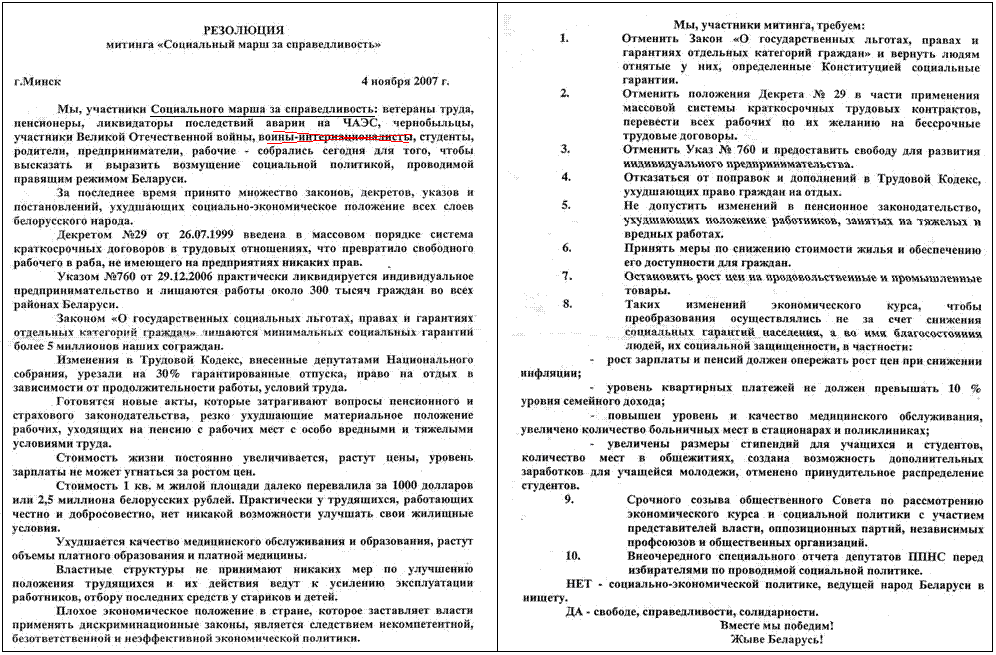 Хто жадае самастойна азнаёміцца з рэпартажамі пра “Сацыяльны марш”, можа зрабіць гэта па наступных адрасах: http://svaboda.org/articlesfeatures/society/2007/11/17247E6A-7D40-4FD6-989B-5044D1D8E714.html; http://svaboda.org/articlesfeatures/politics/2007/11/AF0C0840-6AED-4BC5-9FDD-DFB80A7F7D73.html. Мы ж паспрабуем апісаць хаду падзей карацей.