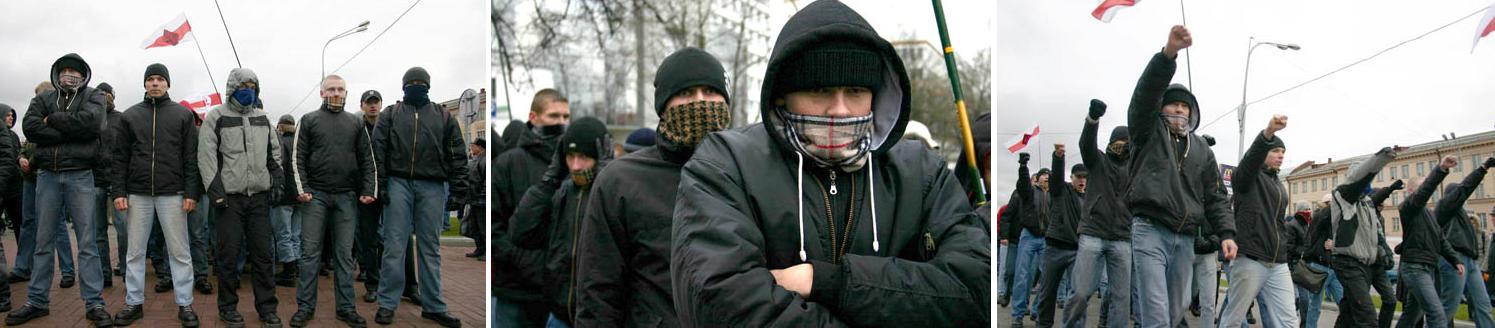 Па-другое, кідалася ў вочы надзвычай вялікая разнамаснасьць удзельнікаў той часткі “сацыяльнага маршу”, якія сабраліся каля Акадэміі навук. Тут былі і камуністы з чырвонымі сьцягамі СССР (?!) й сьцягамі цяперашняга лукашысцкага рэжыму (?!), і нейкія прадстаўнікі расейскай арганізацыі “Абарона” пад трохкалорам цяперашняй расейскай імперыі (у гутарцы з карэспандэнтам «Свабоды» яны заявілі: “разам з Расеяй Беларусі будзе жыць лепей”; ?!), і прадстаўнікі сацыял-дэмакратыі, у тым ліку тыя, хто падтрымлівае Казуліна, і прадстаўнікі БНФ, АГП, актывісты “Маладога фронту”, і ліквідараты, і анархісты з чырвона-чорнымі сьцягамі, і нейкая група ці то скінаў, ці то “прафашыстаў” пад назвай “Белая воля”, і жанчыны з рондалямі, якія грукалі ў іх лыжкамі ў такт маршаў аркестру камуністаў, і г.д. (не было толькі абяцаных прадпрыймальнікаў).