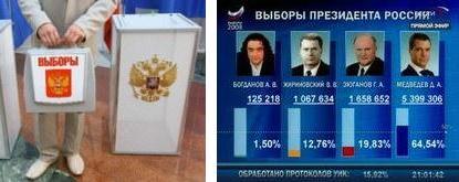 На фоне гэтых вынікаў прывядзем выказваньне, якое зрабіў некалькі гадоў таму губернатар Саратаўскай вобласьці Аяцкаў. Ён, у прыватнасьці, заявіў, што ўлада цалкам авалодала выбарчымі тэхналогіямі й можа абраць каго заўгодна і куды заўгодна (узята адсюль: http://kprf.ru/vibory2008/chronicle/55493.html)… Калі дадаць сюды, што казаў гэта кіраўнік, які прызначаецца на сваю пасаду прэзідэнтам і які ўваходзіць у “вертыкаль” расейскай ўлады, становіцца зразумелым, што нядаўнія вынікі прэзідэнціх выбараў – гэта ня больш, чым ілюстрацыя да яго выказваньня.