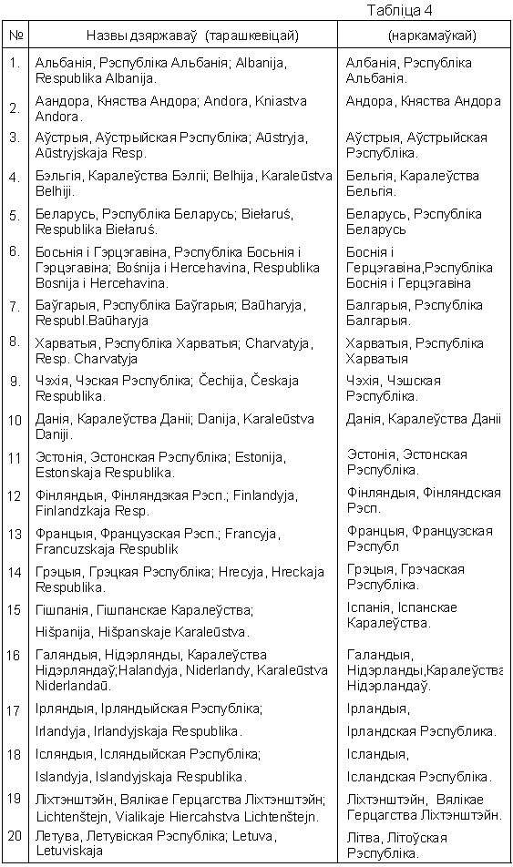 БЕЛАРУСКІЯ ПАЛІТОНІМЫ ЭЎРОПЫ (назвы дзяржаў)