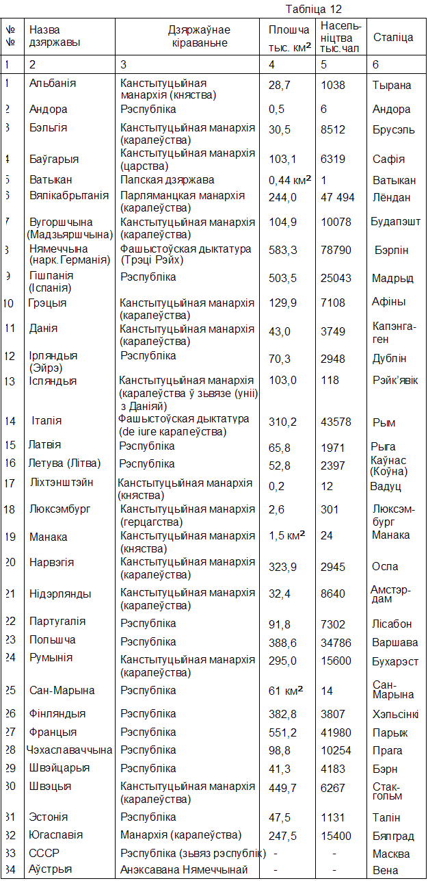 P. S. Характэрная рыса паваеннай дзяржаўнай цывілізацыйнай Эўропы – адсутнасьць дзяржаў-гігантаў.