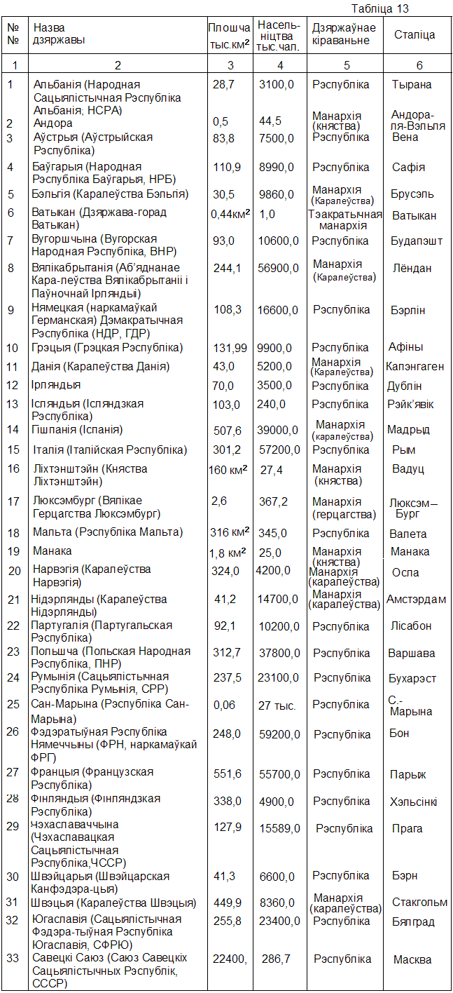 Сувэрэнныя дзяржавы Эўропы ў 1989 г. (паводле М. Амельянчука, 2005)
