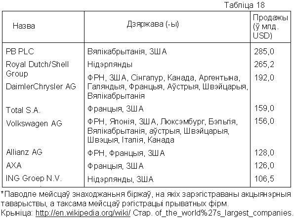 Толькі 35 найвялікшых нацыянальных гаспадарак сьвету мела GDP большы чым складаюць даходы васемнаццатай (!) з найбуйнейшых міжнародных карпарацый. Толькі 16 дзяржаў мелі большы GDP, чым найбольшая з ТНК (на 2004 г. – Exon Mobil Corp. з ЗША).