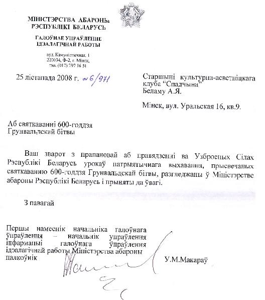 2) Нават па лукашэнкаўскім “законе”, калі зьвяртаешся ў Міністэрства з заявай на беларускай мове, адтуль ПАВІННЫ даць адказ таксама на беларускай.