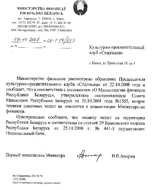Ваша заўвага не зразумелая. Міністэрства фінансаў РБ дала адказ не на нармальнай мове, якой у Беларусі ёсьць беларуская, а на чужой імперскай мове.