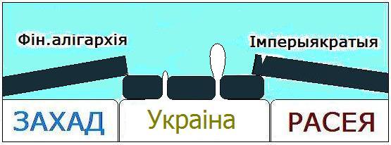 Ва Украіне, у адрозьненьне ад Беларусі, на паверхні грамадска-палітычнага жыцьця няма сфармаванай адзінай крыгі зь мясцовай бюракратыі ці фіналігархіі. Плаваюць асобныя крыгі, паміж якімі ёсьць разрывы-шчыліны, што і дазваляе вострым праблемам украінскага грамадскага жыцьця выходзіць на паверхню (гл. малюнак унізе). Акрамя таго, Украіну не пакрывае пліта расейскай імперскай бюракратыі ў такім маштабе, як у выпадку Беларусі, ня так накрывае пліта глабалісцкай фіналігархіі. Ідзе зацятая барацьба. Украінскія эліты змагаюцца. Таму, калі сітуацыя над Беларусьсю нагадвае замерзлыя, нерухомыя лядовыя таросы, дык сітуацыя вакол і ва Украіне пакуль больш нагадвае крыгаход.