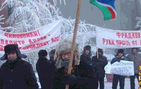 Больш за год таму ў рэдакцыю “Каўказ-Цэнтар” прыйшоў ліст ад журналістаў апазіцыйнай “Якуцкай газеты” (г.Якуцк) Андрыяна і Леаніда Мікалаевых (гл. www.kavkazcenter.com/russ/content/2006/01/27/41368.shtml). Ліст дапамагае дадаткова зарыентавацца ў падзеях, якія адбываюцца ў Якуціі. На фота ўверсе: жыхары Якуцка пратэстуюць у час прыезда Пуціна.